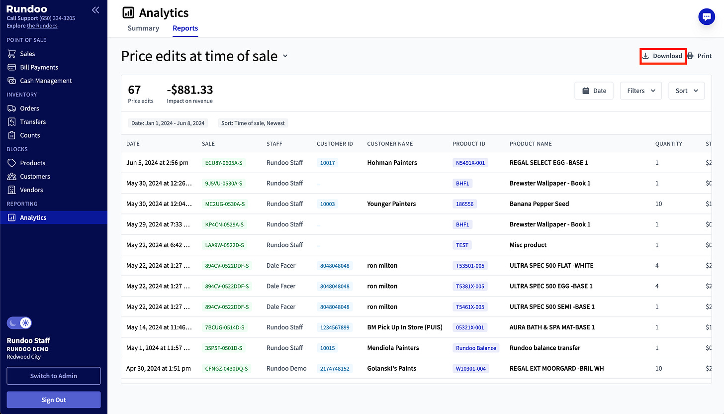 But do you know the revenue impact this has on your business? Which staff are editing prices and for which customers? You can now see this easily in Rundoo!
